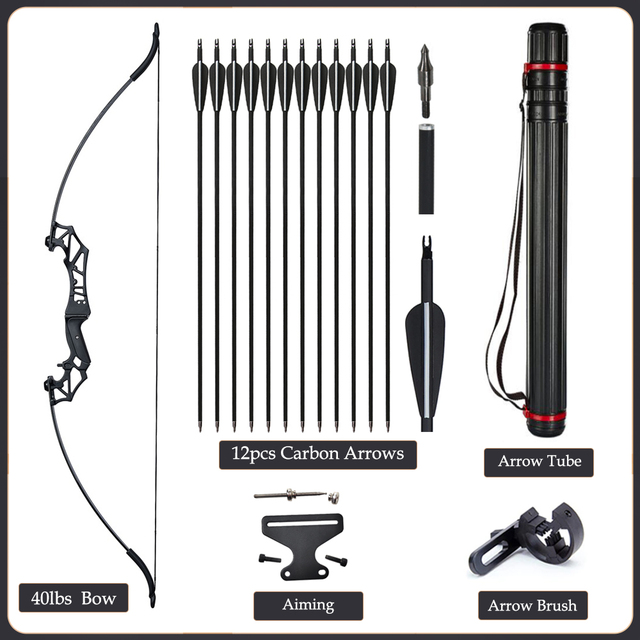 20/30/40/50lbs Archery Bow Recurve Take Down Straight Bow 12pcs Mixed Carbon Arrows Quiver Outdoor Sport Shooting Practice Bow