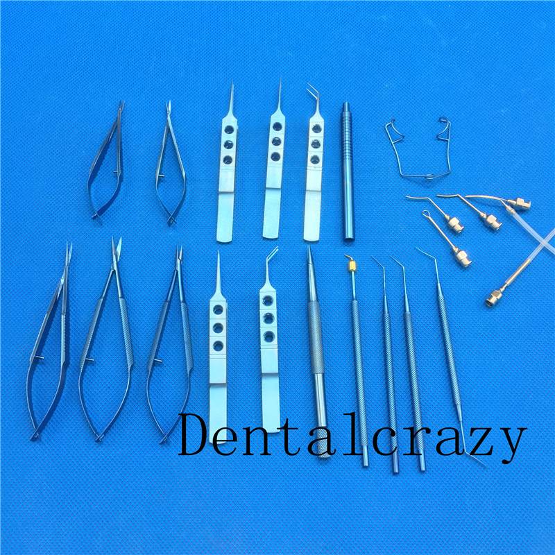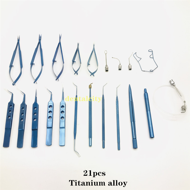 21pcs Ophthalmic Cataract & Intraocular Set Surgical Instrument Eye Micro Surgery Tools