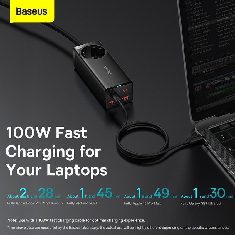 Baseus 100W GaN3 Pro Desktop Charger Power Strip Charging Station Fast Charger For iPhone 14 13 12 Pro Max Xiaomi Samsung Laptop