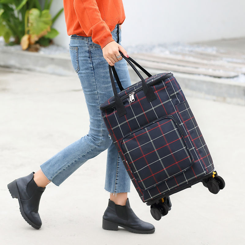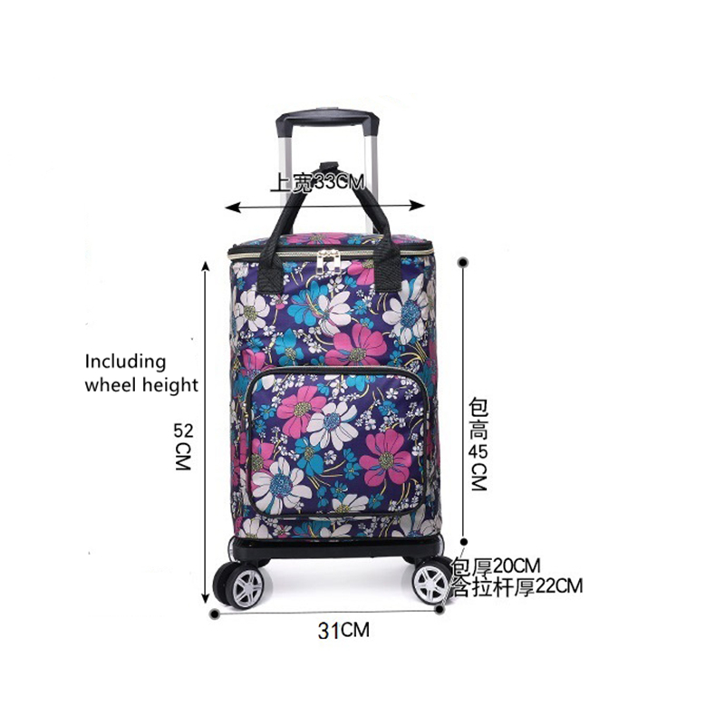Small cart Foldable Shopping Bag Waterproof Handbag with Wheels Big Capacity Grocery Shopping Cart Rolling Trolley Bag For Women