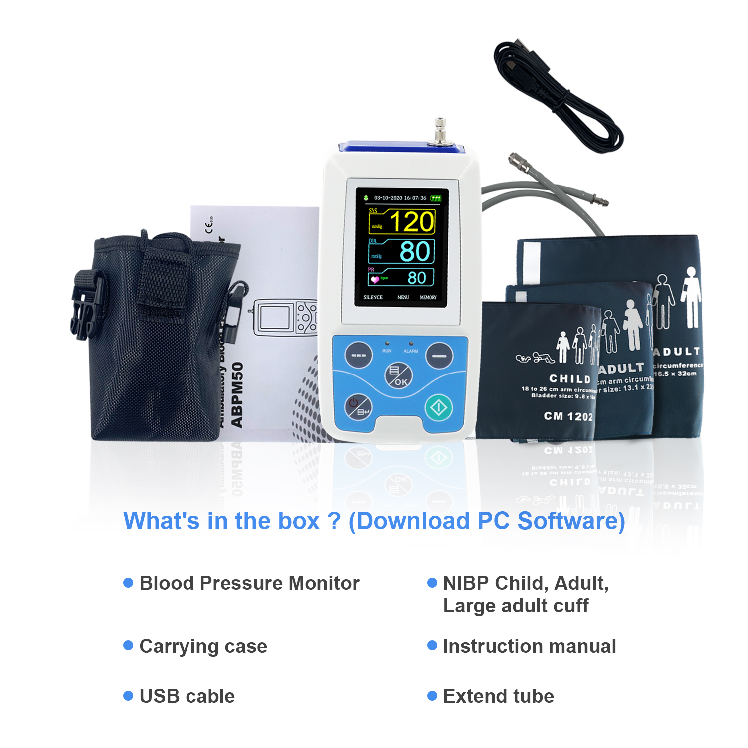 Arm Ambulatory Blood Pressure Monitor 24hours NIBP Holter CONTEC ABPM50 Adult,Child ,Large ,3 Cuffs, Free PC Software
