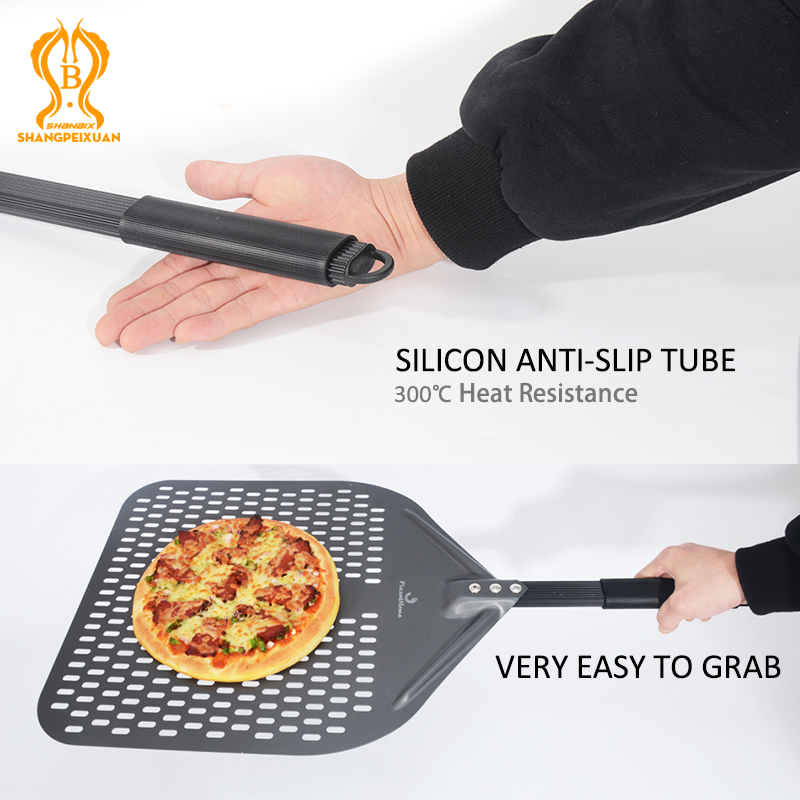 SHANGPEIXUAN 16/14/13/12 Inch Perforated Pizza Peel Rectangular Pizza Shovel Aluminum Hard Coating Pizza Peel Paddle Short Tool
