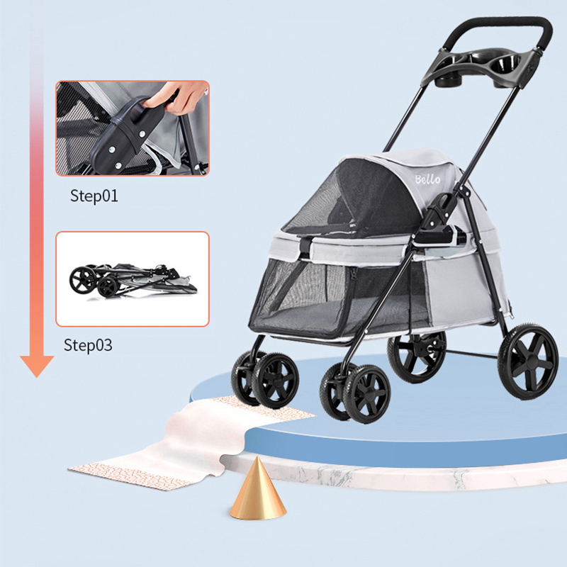 Pet Stroller Lightweight Dog Cat Cart Four-wheel Shock Absorption Folding Dog Transport Cart Breathable Stroller Outdoor
